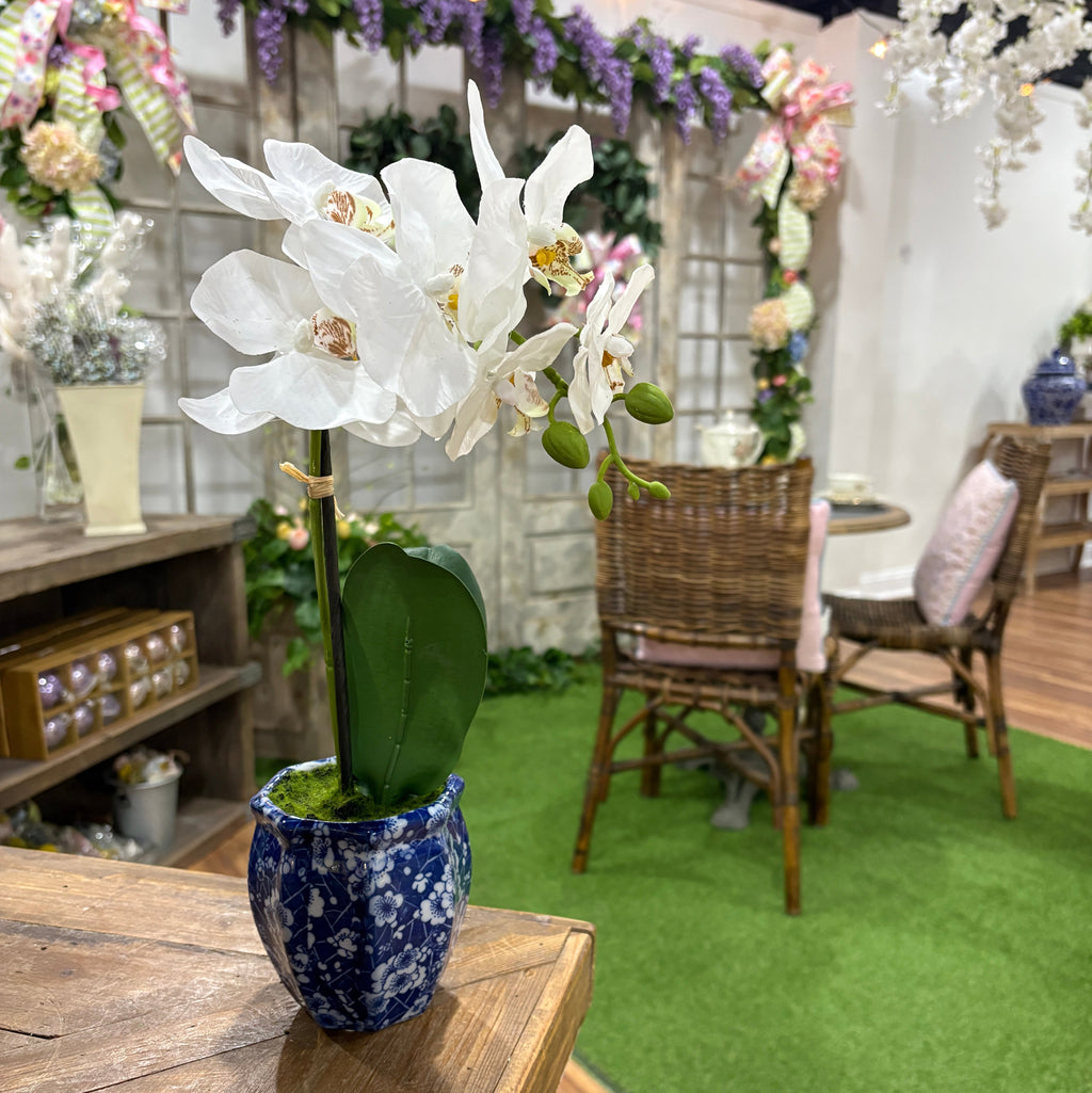 16" Potted Phaleanopsis Orchid in Ming Pot