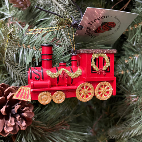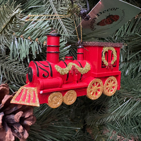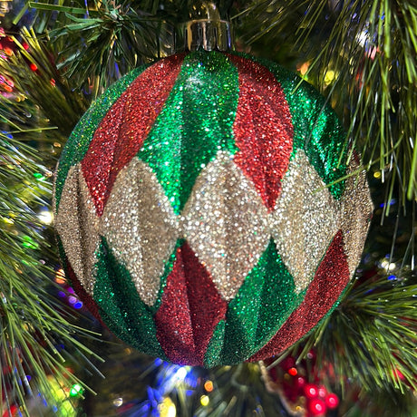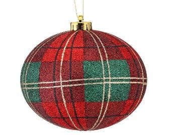 5.5" Red/Green with Gold/Black Stripes Glitter Plaid Ball Ornament