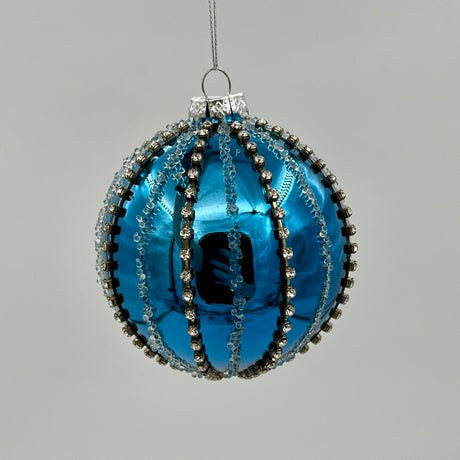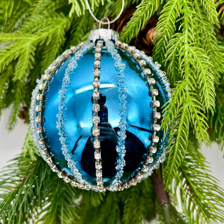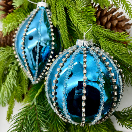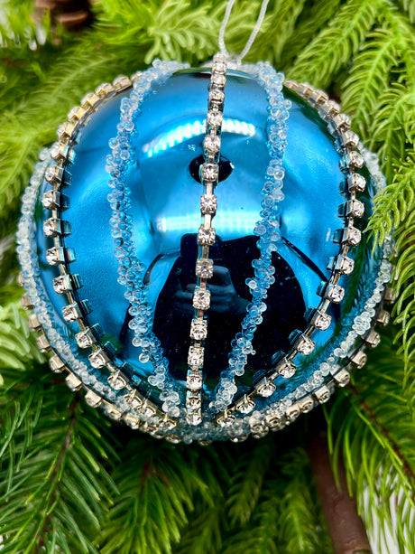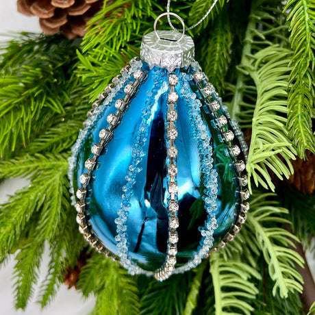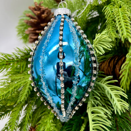 4.5" Navy with Jewel Mercury Ornament with Diamond