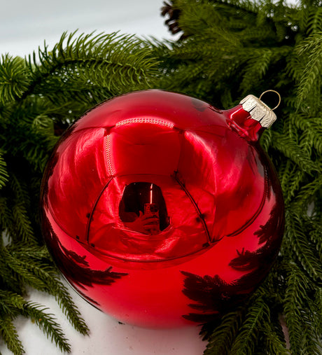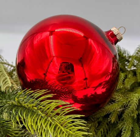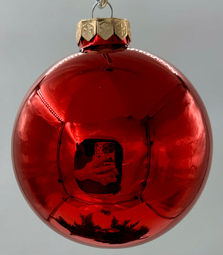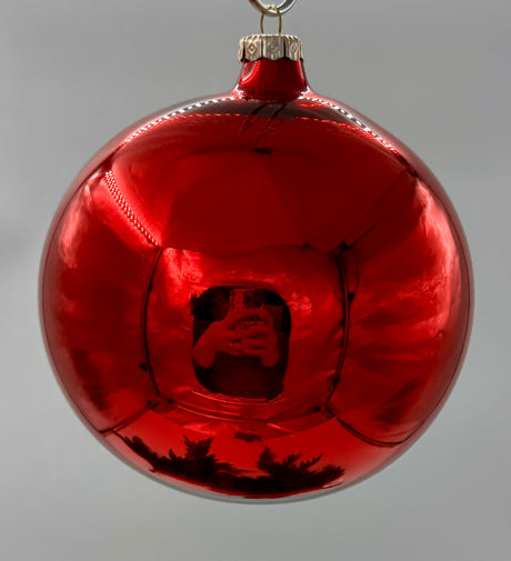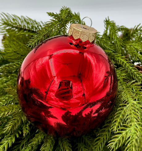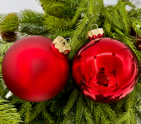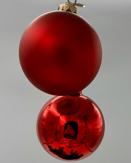 4" Red Glass Bauble Ornament- 2 Shiny/2 Matte