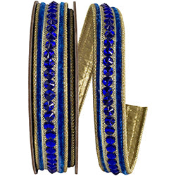 This 5/8"x5YDS Jeweled Center Plush Velvet Ribbon available in royal blue and gold brings elegance and luxury to your decorative projects. Featuring a richly textured velvet center adorned with sparkling jewels, it’s backed with deluxe metallic gold dupioni for added shine and durability. The wired edges ensure effortless shaping and styling, making it ideal for gift wrapping, wreaths, holiday crafts, and high-end design accents. This ribbon is a showstopper, adding opulence and bold color to any creation.