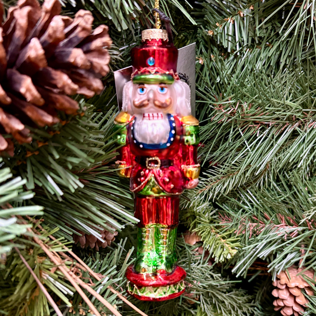 Add a touch of elegance and sophistication to your holiday decor with this stunning 6" Glass Traditional Nutcracker Ornament. Crafted from high-quality green glass, this ornament features intricate details and a luxurious design, bringing the enchantment of the classic nutcracker to life. Perfect for lovers of art, literature, and fashion, this ornament will add a touch of timeless luxury to any Christmas tree.