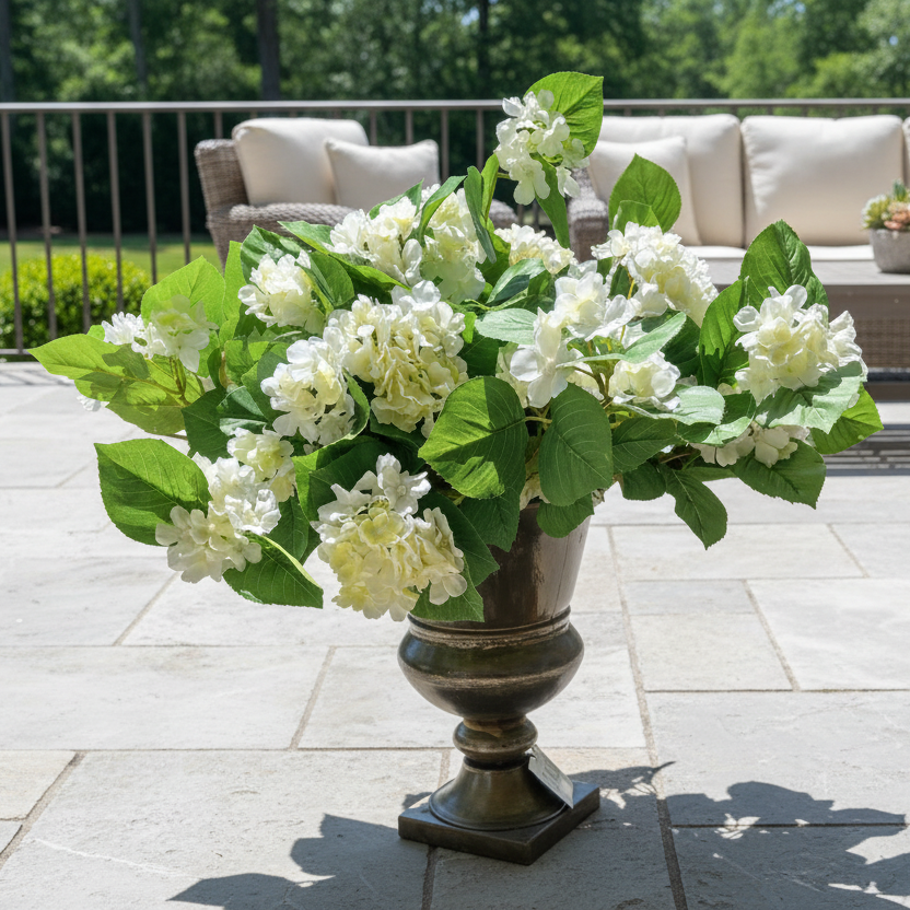 Elevate your outdoor aesthetic with our exquisite Outdoor Hydrangeas 2-Bush Bundle, artfully designed to grace planters ranging from 15 to 24 inches in width. Adorned in either lavender or white, these UV-treated botanical masterpieces retain their vibrancy, bestowing an everlasting bloom that whispers of elegance and refinement in every season.