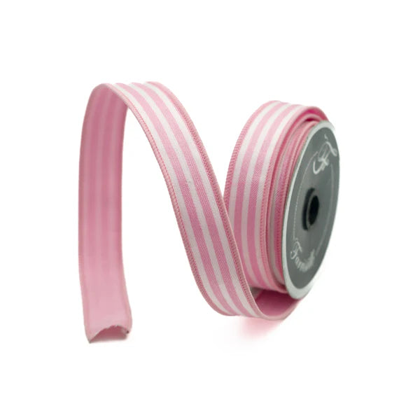 Add a preppy, polished touch to your designs with this 1" x 10yd Pink Newport Stripes Ribbon, featuring crisp stripes that feel fresh, fun, and effortlessly chic. The slim width is perfect for layering into bows, tying around napkins or vases, weaving through garlands, or finishing off gift wrap with a designer-style flair. Its classic stripe pattern and pretty pink palette make it a versatile accent for everything from spring and summer décor to sweet birthday parties and candy-themed trees—anytime you want your styling to look intentional, coordinated, and oh-so-cute.