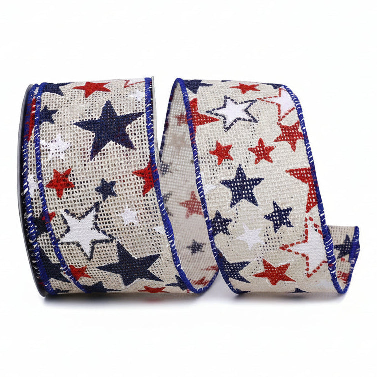 2.5"X10YDS Stars Patriotic Hopsack Wired Edge Ribbon