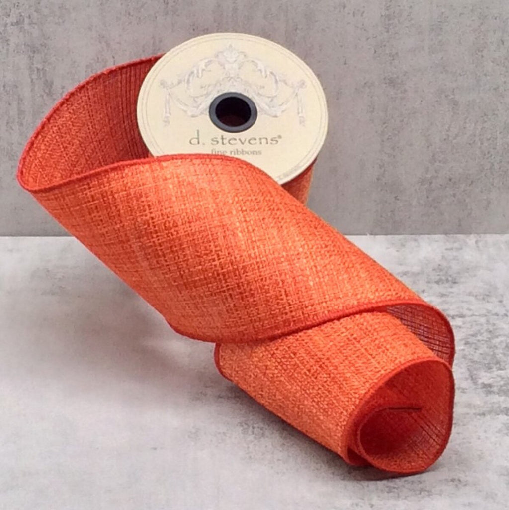 Add natural texture and vibrant warmth to your seasonal decor with this 4" coarse linen ribbon in a rich persimmon hue. The open-weave, textural finish offers a rustic yet refined look, while the wired edge ensures easy shaping for structured bows and layered accents.