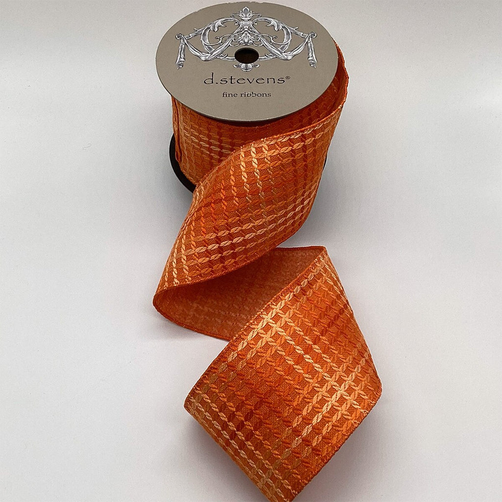 This 4-inch linen ribbon in vibrant orange features a subtle crisscross pattern for texture and depth. Its bold yet versatile hue adds warmth and charm to your autumn and harvest-inspired decor.