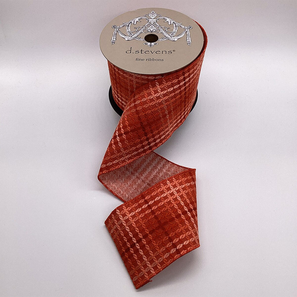 Add rich texture and seasonal color with this 4" linen ribbon in a vibrant persimmon hue. Featuring a subtle crisscross pattern woven into the fabric, it brings depth and dimension to any design. The wired edges make shaping easy for bows, garlands, and more.