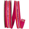 Add a pop of playful glamour with our 7/8" Orange & Fuchsia Sequin Trimming Striped Edge Dupioni Deluxe Wired Ribbon. This vibrant ribbon features a luxe dupioni fabric base with bold striped edges and sparkling sequin trim for eye-catching detail. Perfect for accenting gift wrap, party favors, or smaller bows, its wired edge allows for crisp shaping and creative flexibility. With 5 yards per roll, it's the perfect blend of color, texture, and shine for high-impact, small-scale decorating.