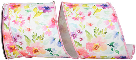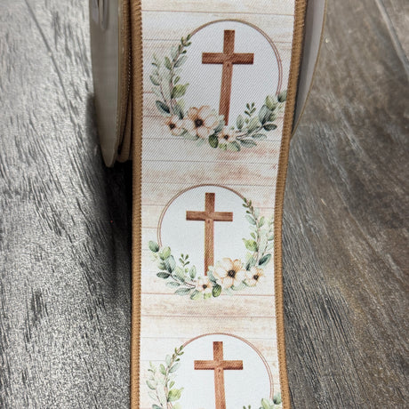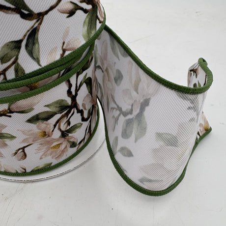 2.5"X10YDS Cream & Green Magnolia Ribbon