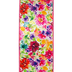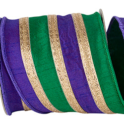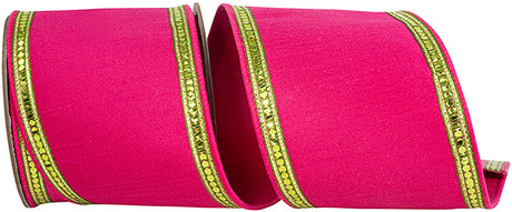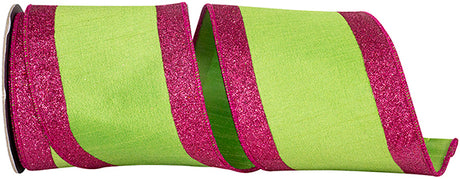 4"X5YDS Citrus&Fuchsia Glitter Striped Edging Dupioni Deluxe Wired Edge Ribbon