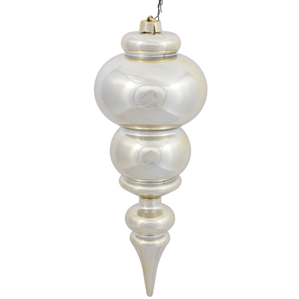Elevate your holiday décor with the 14" Champagne Shiny Finial Ornament, a stunning blend of elegance and durability. Crafted from shatterproof plastic and UV-resistant material, this ornament is designed to withstand seasonal use while maintaining its radiant champagne shine.