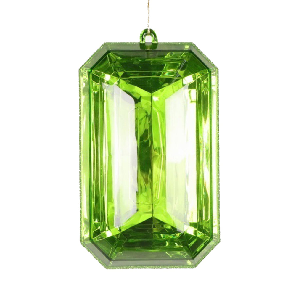 Make a bold statement with the 8" Citron Rectangle Jewel Glitter Ornament. Featuring a double-sided faceted jewel design with Citron glitter-accented edges, this ornament adds a touch of luxury and brilliance to your holiday décor.