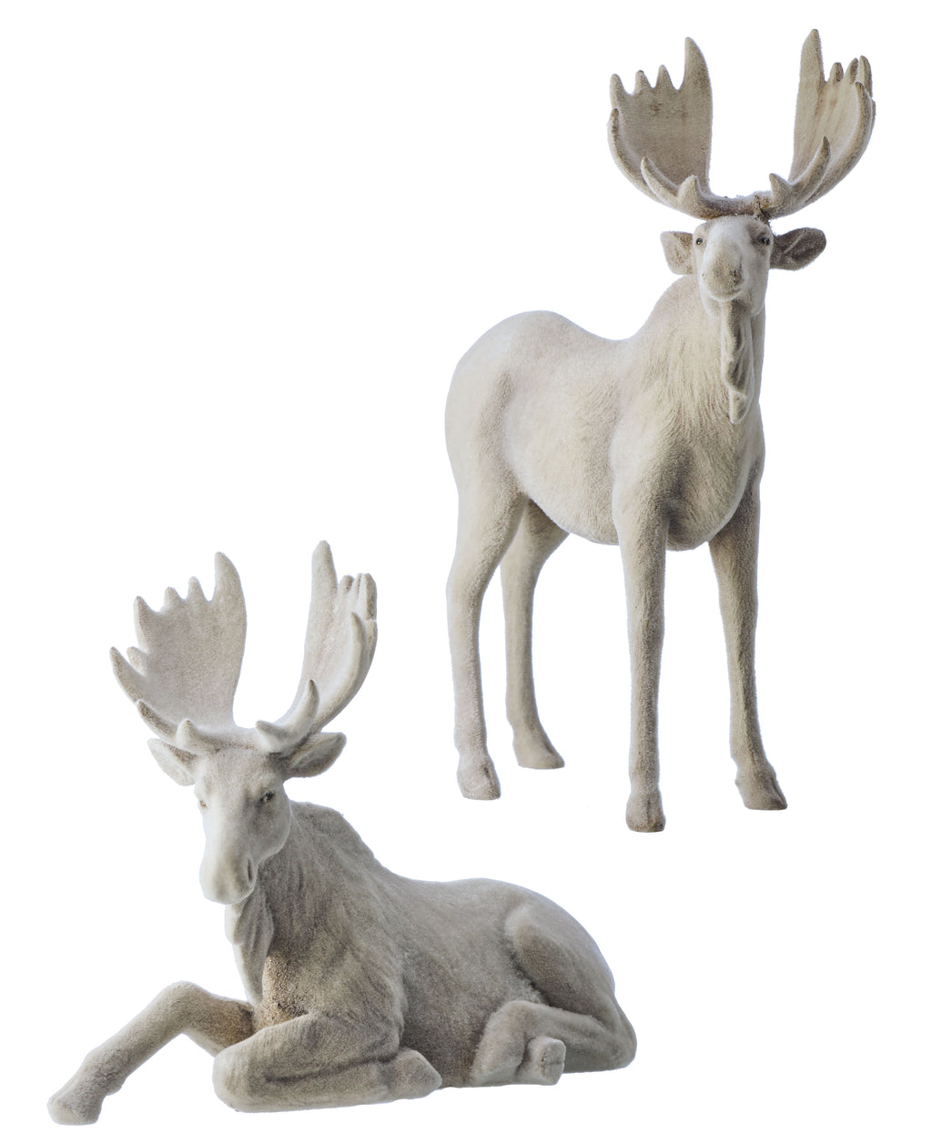10"/12" Natural & Cream Resin Flocked Moose Set of 2