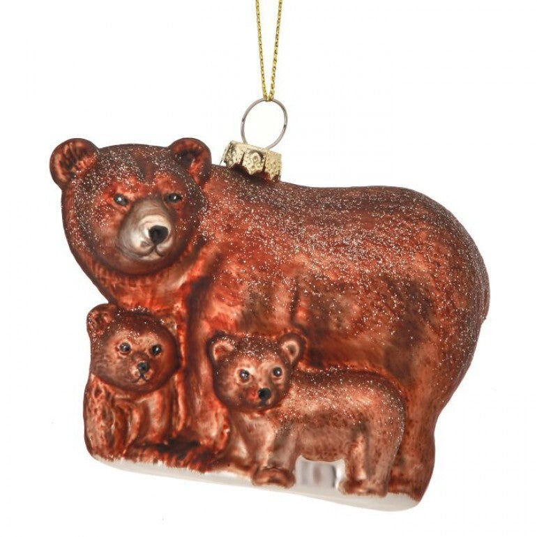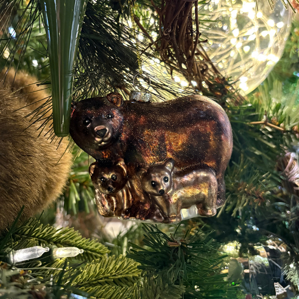 Indulge in the sophistication of our 4" Glass Mother Bear & Cubs Ornament. With sweet details, this ornament will transport you to the Smoky Mountain Christmas. Adorn your tree with a touch of woodland forest luxury.