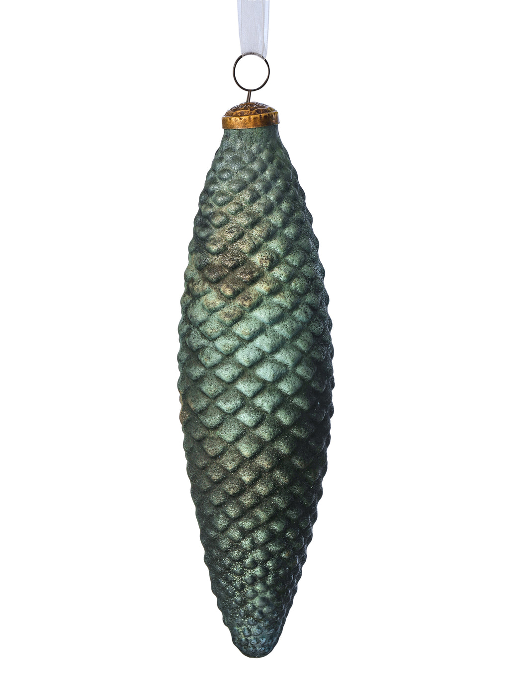 9" Antique Rustic Glass Pine Ornament | Available in Green or Light Brown