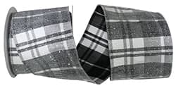 This ribbon features a classic grand plaid pattern in elegant shades of black, white, and gray, enhanced with a frosted glitter overlay for a subtle sparkle. The wired edges offer structure and flexibility, perfect for shaping bows, wreaths, and festive decor. A stylish choice for winter, holiday, or monochrome-themed projects.