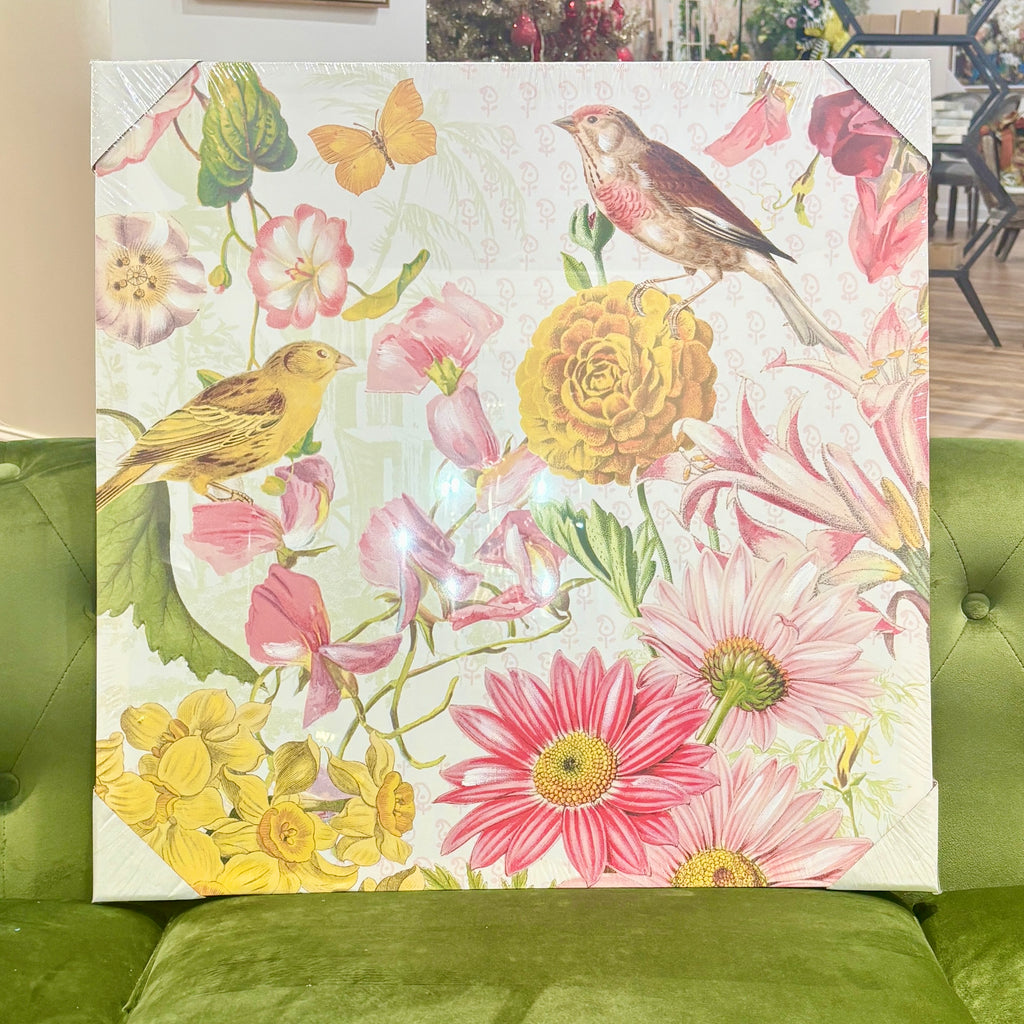 Bring the beauty of nature indoors with this 23.5" canvas featuring a hand-painted look of delicate birds, butterflies, and blooming florals. Soft, botanical tones and intricate detailing make it a serene addition to any room. Ideal for spring displays, gallery walls, or nature-inspired décor.