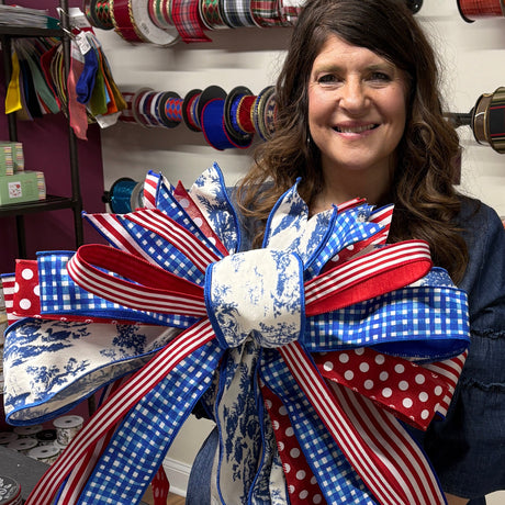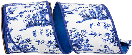 4" Blue | White | Chinoiserie | Deluxe Wired Edge Ribbon | 5 Yards