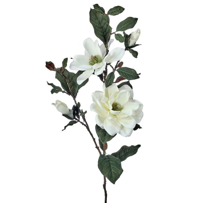 The 38" Charleston Magnolia Spray evokes timeless Southern elegance with its creamy white blooms, rich green foliage, and natural branching form. Each petal is crafted with real-touch texture for a lifelike feel, while the varying stages of bud and blossom add depth and authenticity. Standing tall at 38 inches, this statement stem adds graceful height and refined beauty to vases, urns, or floral arrangements with effortless charm.
