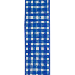 2.5"X10YDS Blue Watercolor Check Deluxe Dupioni Backed Wired Edge Ribbon