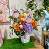 Create an exquisite Easter brunch experience with our Designer Custom Arrangement. Indulge in the fun florals and luxurious velvet carrot spray, adorned with delicate Easter eggs, adding the perfect touch to your table decor. Elevate your celebration with elegance and sophistication with this exclusive arrangement.