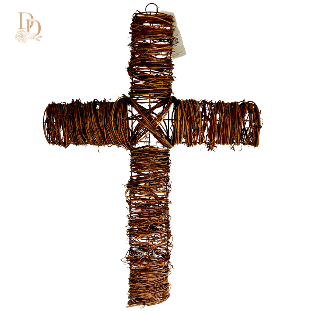 Design Details: Crafted from durable, natural-looking twigs, the cross shape provides structure and a unique visual element. The textured branches add depth and interest to any arrangement, whether used alone or layered with other décor.