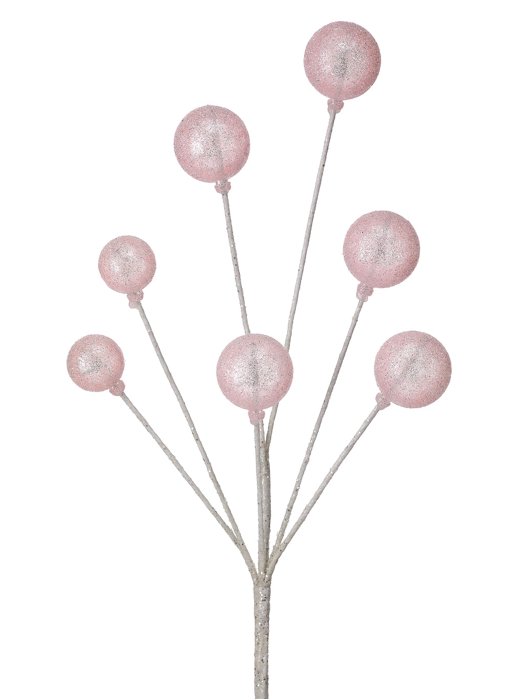Add playful sparkle and dimensional charm to your holiday decorating with the 21" Glitter Sugar Ball Spray. Each spray features seven foam spheres coated in shimmering iridescent glitter, arranged on wired, glittered stems for easy shaping. Available in Blue or Blush Pink, these sweet accents bring a touch of frosted whimsy to trees, wreaths, centerpieces, or candy-themed displays. Each sold separately.