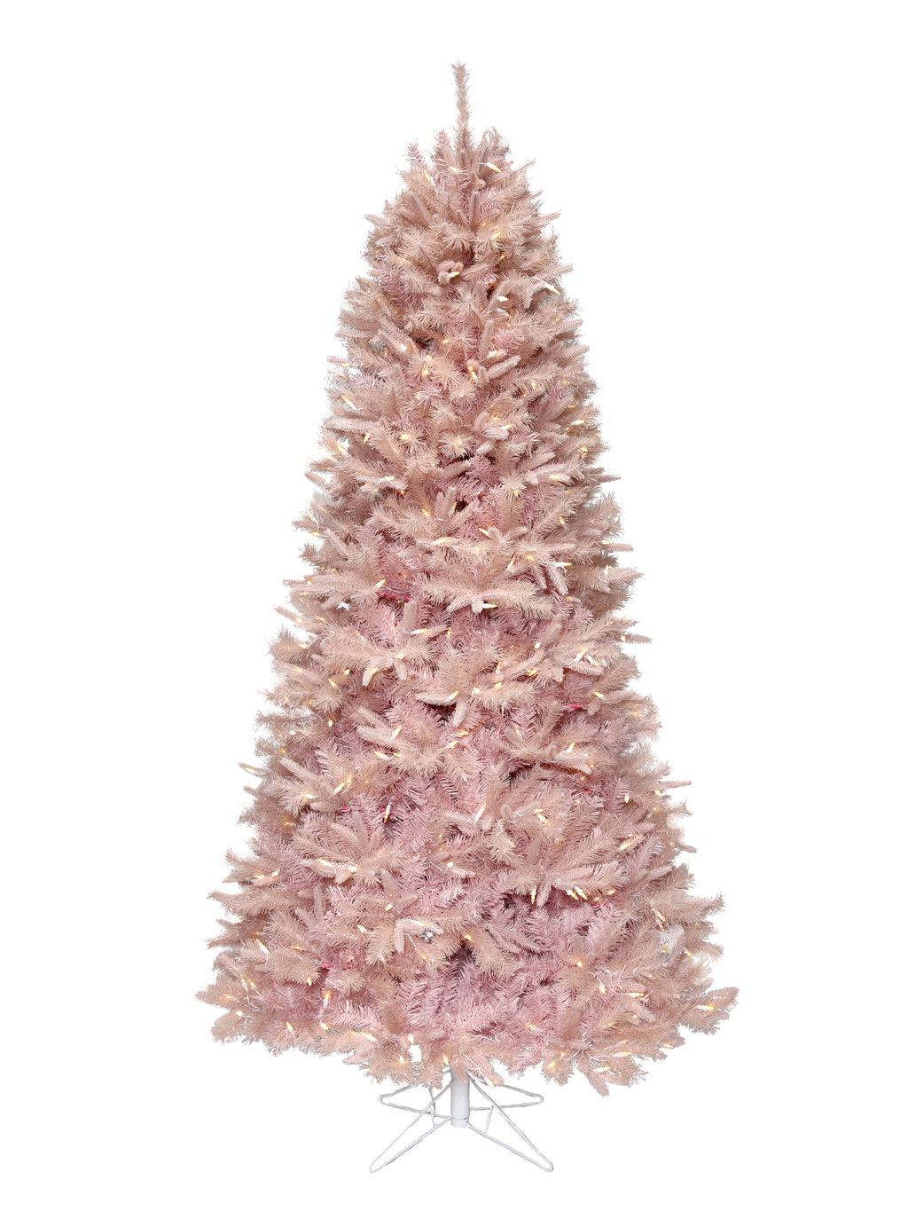 This full-shape tree in a soft powder blush pink finish brings a modern romantic touch to holiday decorating. Pre-lit with 700 warm white LED lights, it creates a soft ambient glow and eliminates the hassle of stringing lights. Features a sturdy white metal base and full branch tips for easy decorating with ornaments, ribbons, or florals.