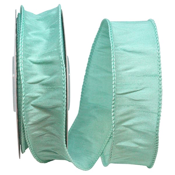 Elevate your seasonal and everyday designs with the luxurious texture of our Dupioni Supreme Wired Edge Ribbon in mint green. Offered in 1.5" and 2.5" widths and available in 10- or 20-yard rolls, this high-end ribbon features a subtly textured, silk-like finish and wired edges for effortless shaping. Perfect for holiday bows, wreaths, gift wrapping, floral designs, and upscale event decor. Each size and length sold separately.