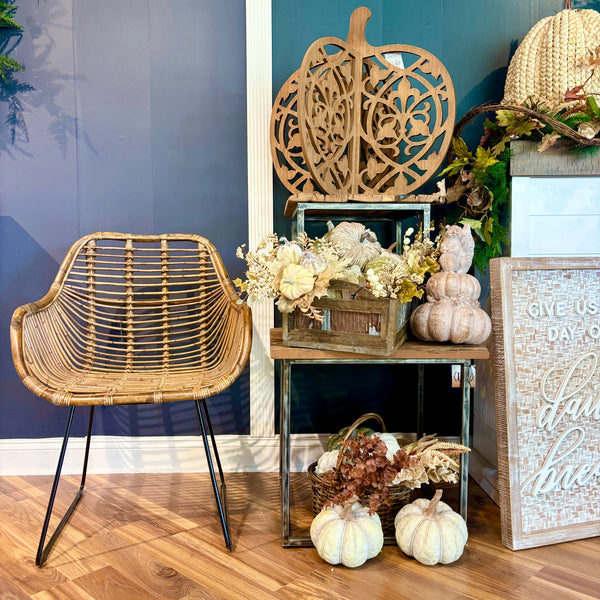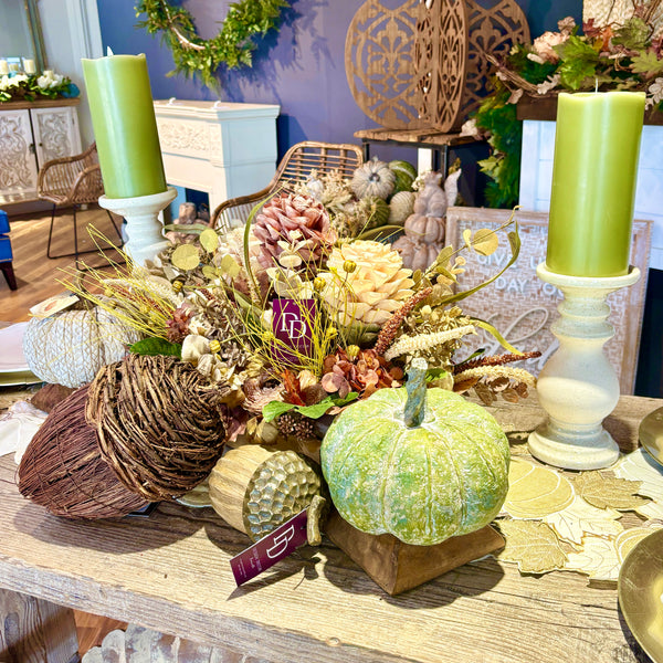 With real-touch florals, dried-grass textures, and creamy taupes and rusts, these handcrafted pieces layer beautifully to create warm, organic charm in any space.
