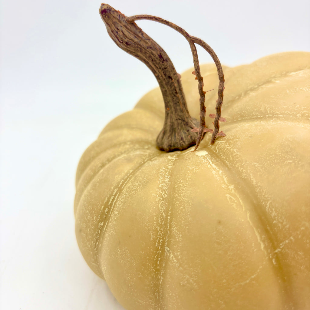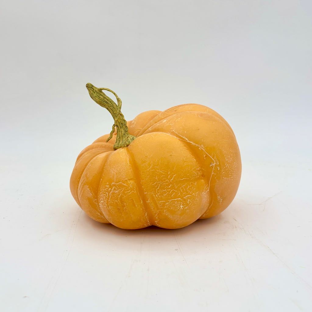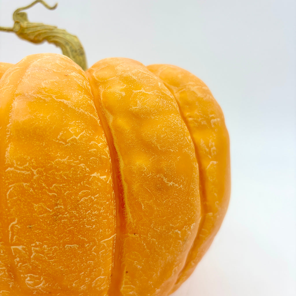Bring natural warmth to your fall displays with these ultra-realistic soft touch pumpkins, available in two colors and sizes. The Butternut Pumpkin features a low, rounded profile pumpkin with subtle beige-tan tones and a dark, hand-finished stem. The 7" pumpkin stands taller with a deeper ribbed texture and rich, butternut coloring with light distressing for a vintage look.—perfect for neutral or rustic autumn palettes. The 6.5" Weathered Orange Pumpkin features a low, rounded profile pumpkin with subtle beige-tan tones and a dark, hand-finished stem while the 7" Weathered Orange Pumpkin stands taller with a deeper ribbed texture and rich, burnt-orange coloring with light distressing for a vintage look. Made with a velvety soft exterior that mimics the feel of real gourds, these pumpkins are ideal for layering in centerpieces, bowl arrangements, or seasonal vignettes. Each size and color sold separately