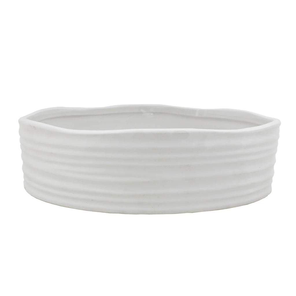 Our White Urban Coil Bowl features a hand-crafted look with gently rippled sides and an organic, slightly irregular rim. Finished in a crisp white glaze, this low, wide ceramic bowl brings quiet sophistication to modern tablescapes, open shelving, or seasonal centerpieces.