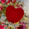 This 9-inch heart-shaped ornament features a soft, velvety flocked finish and is suspended by a coordinating satin ribbon tied in a bow. Available in two vibrant colors—hot pink and classic red—each heart is sold individually. Ideal for hanging, it brings a playful yet polished accent to seasonal or themed decor. Sold Separately.