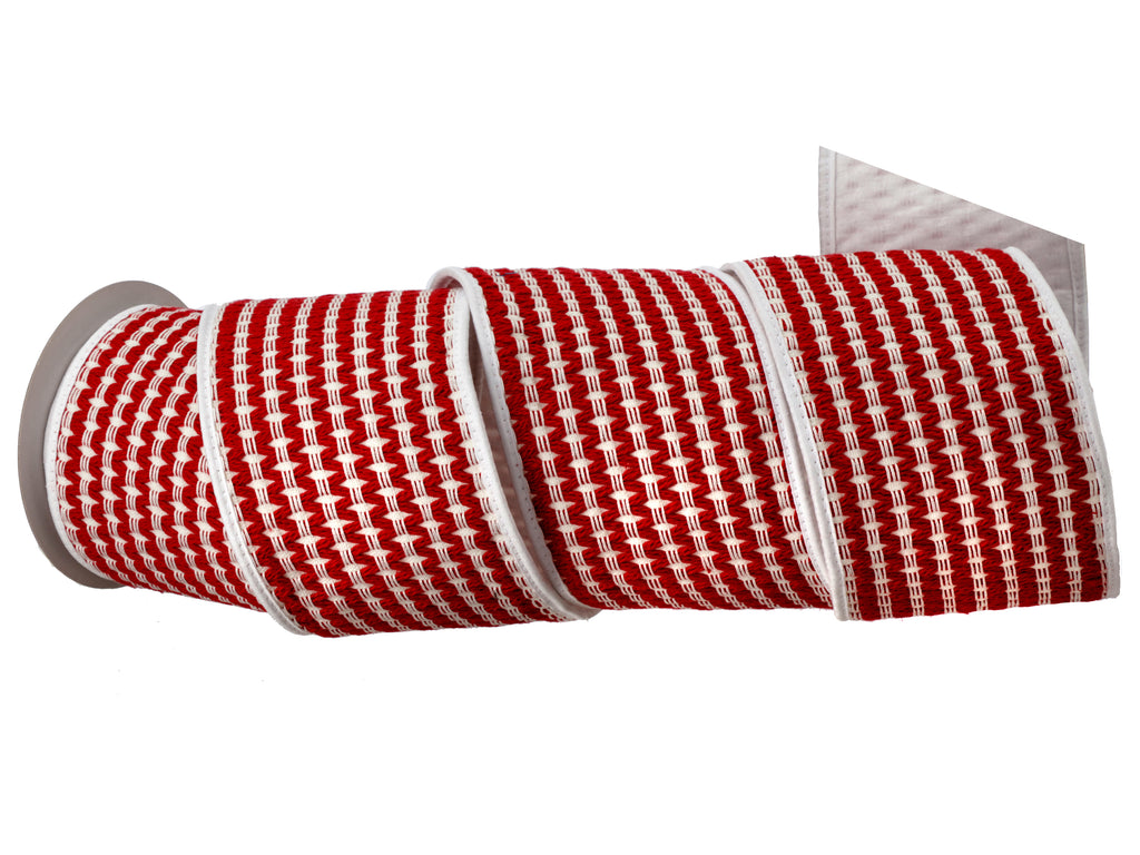 4" x 5 YDS Red & White Cotton Waffle Jacquard Ribbon