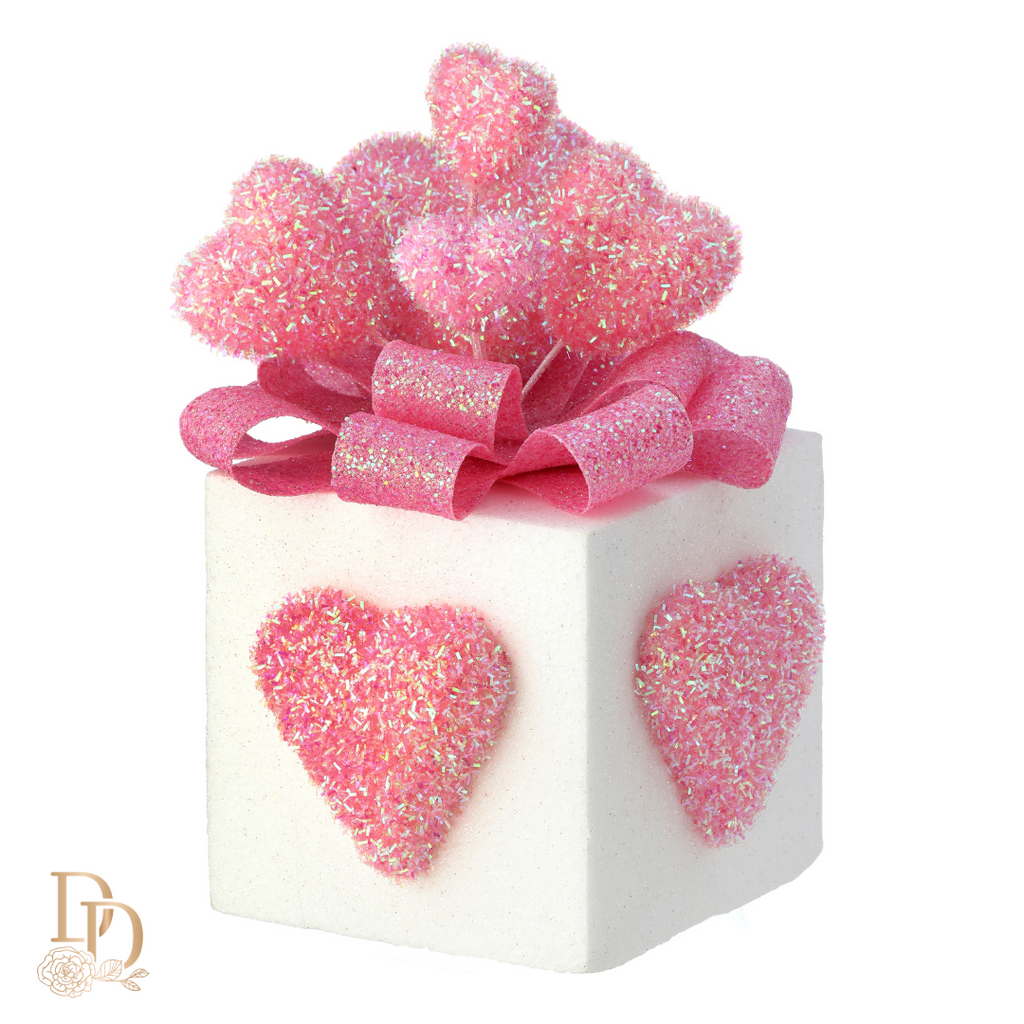Indulge in luxury with our 10.5" Pink Glitter Gift Box with Hearts. Adorned with sparkling glitter and charming hearts, this gift box is a perfect addition to your Valentine's Day decor.