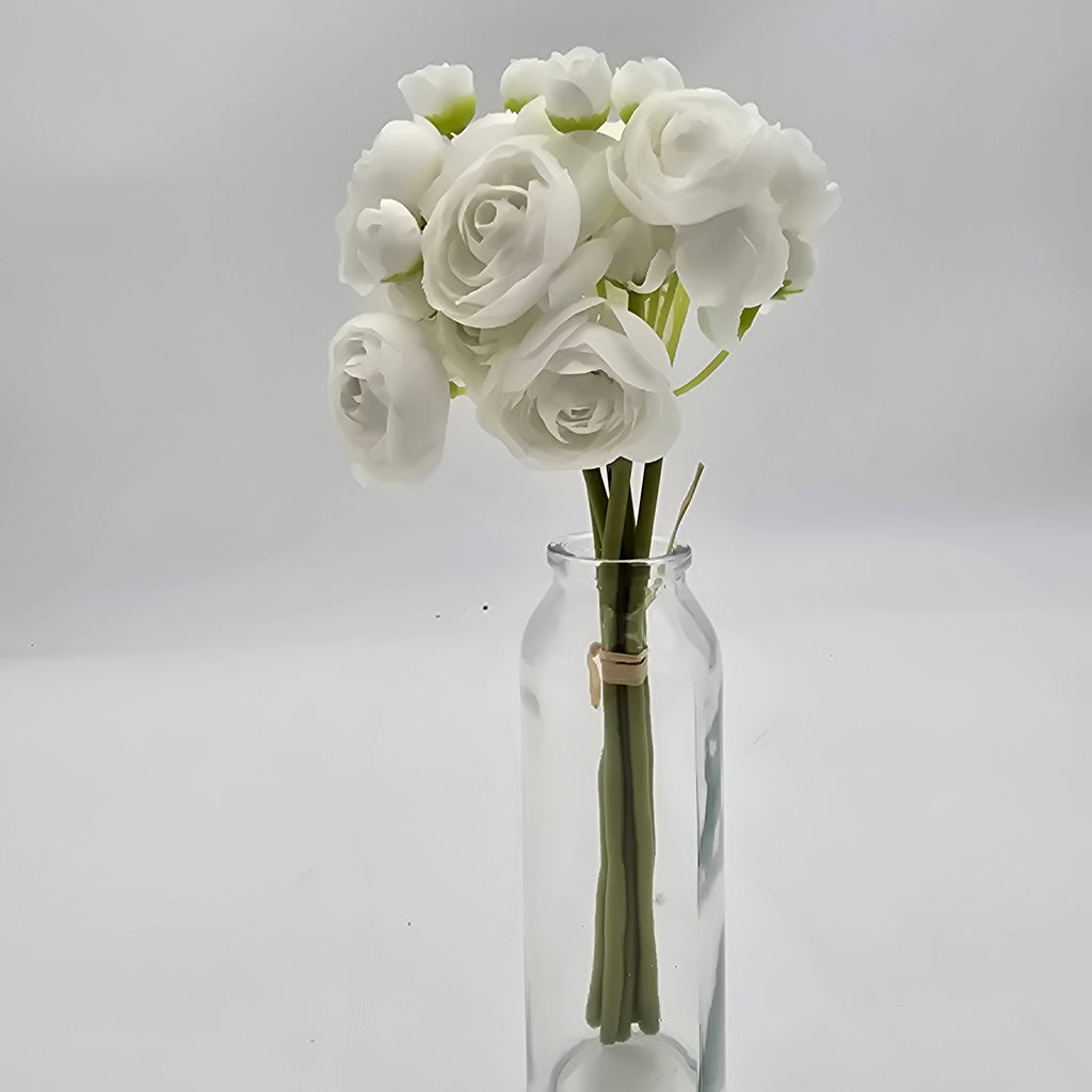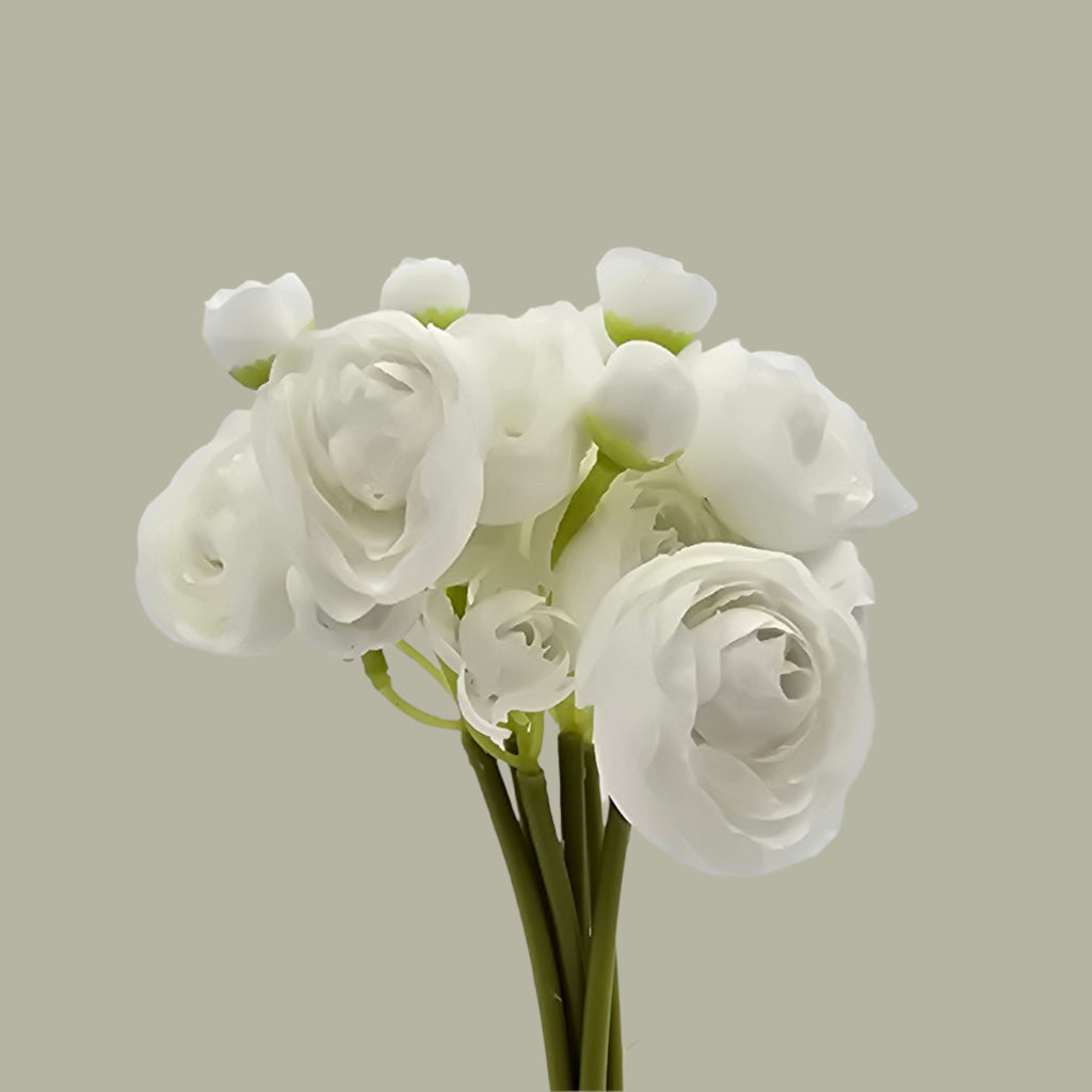 Soft, full, and beautifully lifelike, the 11" White Ranunculus Bundle adds a touch of timeless romance to any arrangement. Each bloom is crafted with real-touch petals in creamy white tones, capturing the delicate layering and natural elegance of fresh-cut ranunculus.