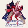 Hand-tied custom bow by Amy featuring ribbons in our exclusive Americana Ribbon Bundle! The perfect accent for your favorite wreath, garland, patriotic centerpiece use it on its own.