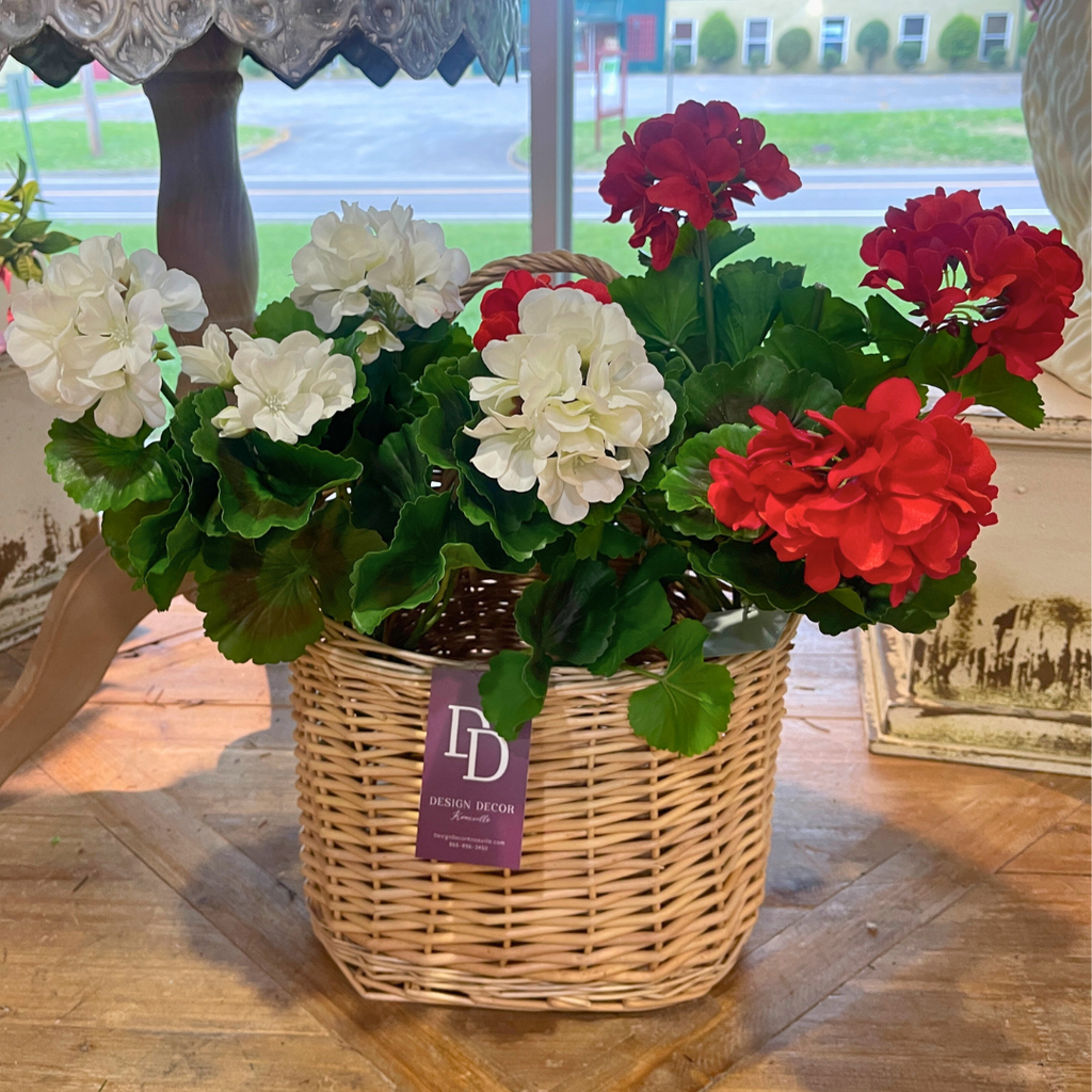 17" Natural Touch Geranium Bush | UV Protected | Red or White