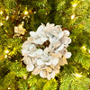 17" Hydrangea Spray. It features wire throughout the petals and stem for easy decorating. It measures 17 inches from top to bottom. Paper wrapped stem.