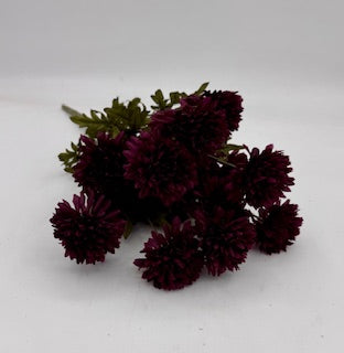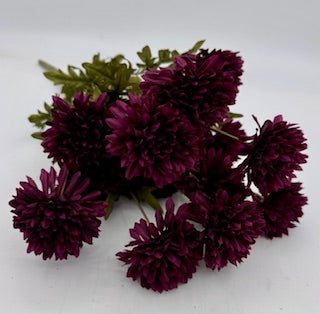 The 19" Plum Mum Bundle showcases a lush cluster of deep plum blooms with layered petals and rich green foliage. Each stem is crafted to reflect the texture and fullness of real mums, offering a bold, refined pop of color. This faux floral bundle is part of Design Decor’s signature collection—bringing lasting elegance and seasonal depth to any arrangement without the need for maintenance.