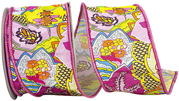 2.5" Fantasia Pink La Print | Wired Edge | Ribbon | 10 Yards
