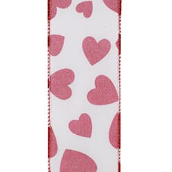 Add a touch of sparkle and sweetness with our 2.5" Glitter Hearts Taffeta Wired Edge Ribbon (10 yards). The crisp taffeta texture pairs perfectly with glittery hearts for a polished, festive look, and the wired edge makes it easy to shape full bows that stay picture-perfect on wreaths, garlands, gifts, and Valentine’s décor.