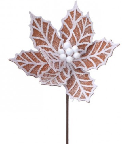 Enhance your holiday decor with our 24" Gingerbread Poinsettia Stem. The realistic design and festive colors will bring a touch of warmth to your home. Perfect for adding a pop of holiday cheer to any arrangement or display.