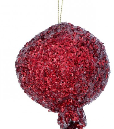 Add a touch of whimsy to your holiday decor with our 3" Red Beaded Metallic Pomegranate Ornament. The perfect size for adding some sparkle to your tree, this playful ornament features a unique pomegranate design in vibrant red and shiny metallic beads. Deck the halls with this quirky and charming addition!