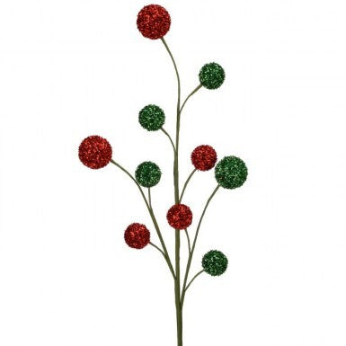 Add a festive sparkle to your holiday décor with this 30-inch Green & Red Glitter Ball Spray. Featuring vibrant red and green glittered spheres atop flexible, natural-looking stems, this dazzling accent brings a playful yet elegant touch to any seasonal arrangement. The shimmering finish catches the light beautifully, creating a dynamic and eye-catching display.
