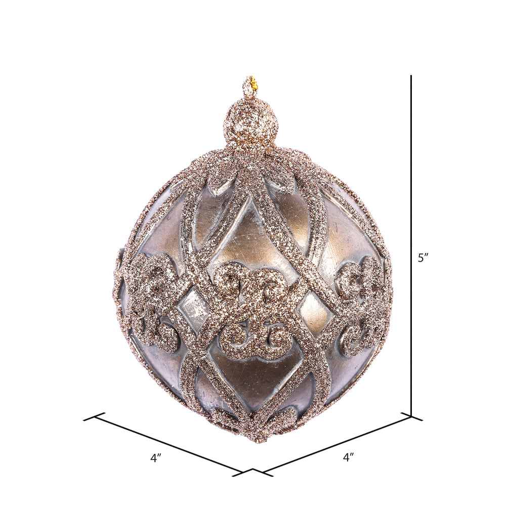 5" Gold Antique Filigree Pattern Ball Ornament. This item features an elegant embossed design to create a rich texture and a rustic finish. This unique ornament is an exceptional addition to any collection as it matches well with a variety of décor and goes perfectly on a holiday tree. Includes 3 pieces per pack.