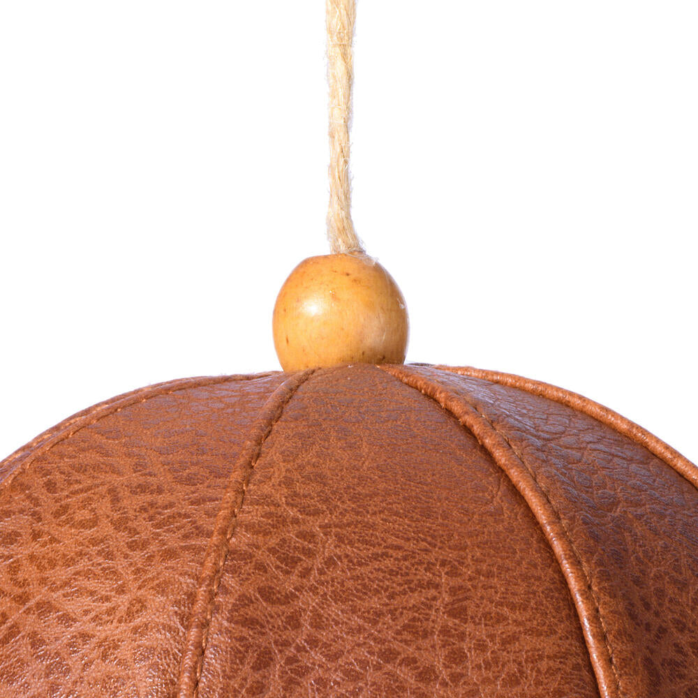 Elevate your holiday decor with a touch of timeless sophistication. Our 5" Faux Leather Ball Ornament is crafted in rich chestnut brown with a hand-stitched panel design, evoking the classic elegance of vintage leather goods. The supple faux leather offers a luxurious texture, while a natural wood bead and jute hanging loop add a warm, rustic finish.