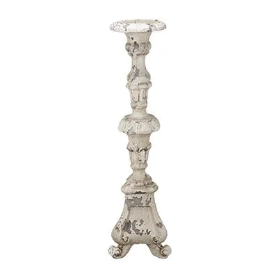 Bring vintage grandeur to your space with the Magnesia Pillar Candle Holder, a stately accent inspired by antique European candlesticks. Standing at an impressive 24.5" tall, this piece features ornate shaping, scrollwork feet, and a heavily distressed finish that lends an authentically aged look to mantels, consoles, or centerpieces.
