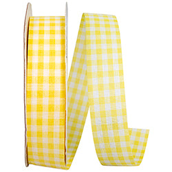 Bright and cheerful, this 7/8" x 25-yard Yellow Gingham Check Ribbon features a classic gingham pattern in sunny yellow and white. Soft and lightweight with a clean finish and non-wired, it’s perfect for spring crafts, Easter baskets, gift wrapping, and adding a sweet farmhouse touch to floral arrangements or everyday décor. A timeless accent with fresh seasonal charm.